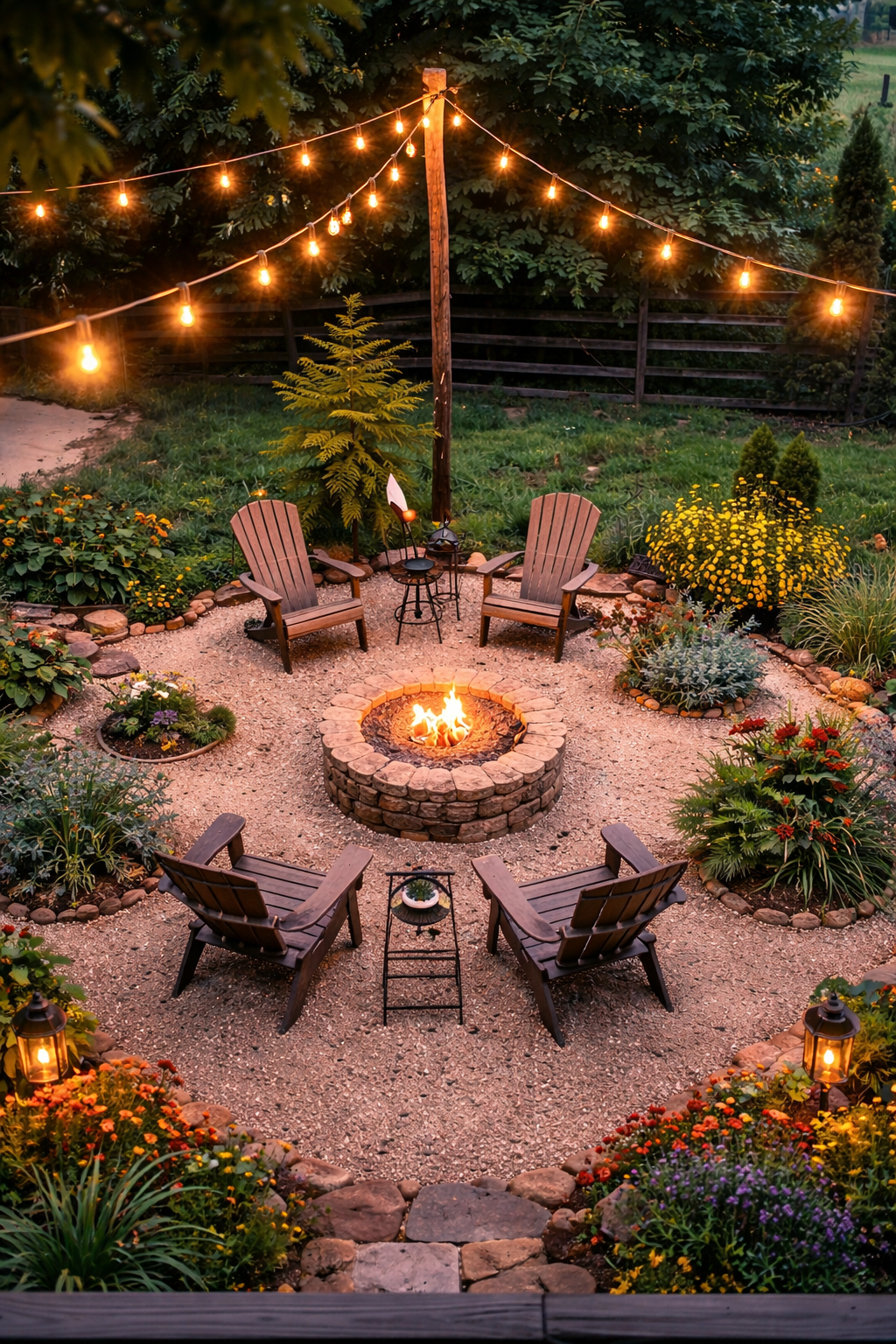 9. Fire Pit with Adirondack Chairs